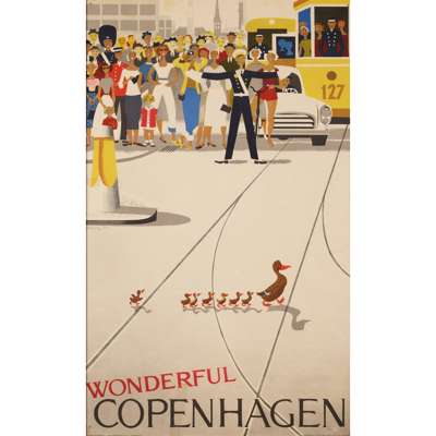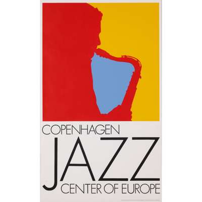 Arne Ungermann for Andreasen & Lachmann, 'Den Permanente 1931-1956' ‒ Danish Crafts & Industrial Art, designed 1956, lithograph; Viggo Vagnby for Jens Christian Sørensen / The Tourist Association of Copenhagen, 'Wonderful Copenhagen', designed 1953, lithograph; Per Arnoldi for Kai Svendsen, 'Copenhagen Jazz - Center of Europe', designed 1972, lithograph