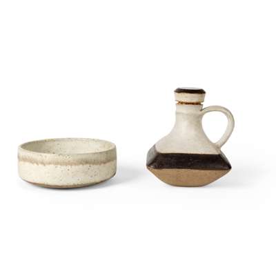 Bowl: 16.5cm diameter (6 1/2in diameter); Jug: 16cm high (6 1/4in high)