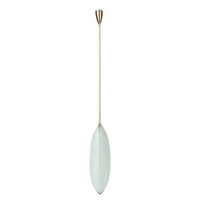 Fontana’s ownership of the glass manufacturing company, Luigi Fontana & Compagni, led the material to become a central feature in the company’s design; thus, the relationship between glass and light pervades the pieces. Fontana Arte’s prowess in glass compositions extended to that of many stained-glass windows in both churches and cathedrals, such as the Duomo of Milan. Throughout the history of the company, glass has remained an integral part of the works, highlighted by name of the retrospective exhibition, House of Glass (2022), curated by Christian Larsen that retraces the company’s design.
