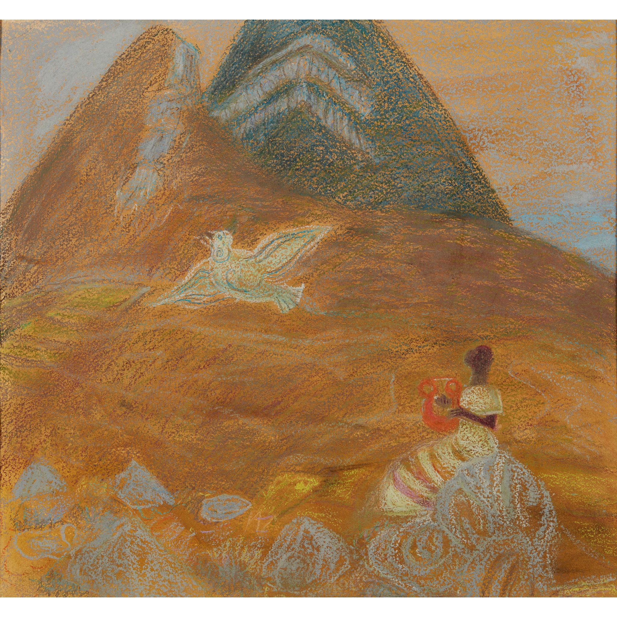 inscribed (to reverse), pastel on buff paper