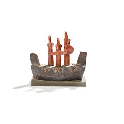 signed and titled (to base), stoneware on wooden base