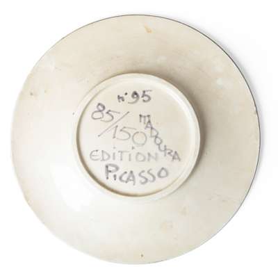 85/150, numbered, painted ‘Edition Picasso’ and ‘Madoura’, partially glazed and painted earthenware.