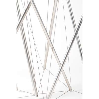 Kenneth Snelson's sculptures, thrusting skywards like towers and stretching out in extended cantilevers above the ground, can be found in museums and public parks around the world. Snelson's forms maintain the structure through the outward push of the compression tubes and inward pull of the tension cables.