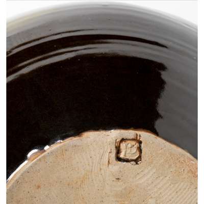 impressed artist's seal, stoneware, tenmoku with 'Foxglove' motif
