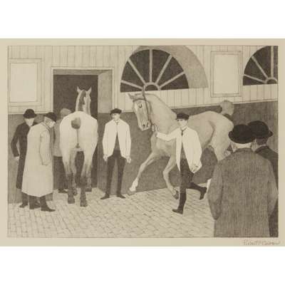 From an un-numbered edition of sixty-five plus two proofs. This work is based on the oil painting The Horse Mart of 1917-18, in the collection of the Yale Center for British Art (acc.no. B2001.2.110).
