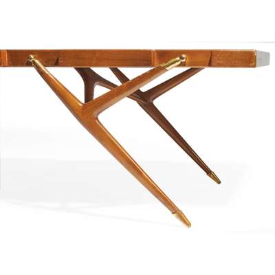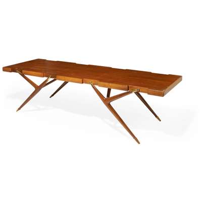 Coffee table model 1116 is the lower version of the console table 1947.1. It was designed by Parisi for M. Singer & Sons and produced both in Italy and by M. Singer & Sons exclusively for the American market.