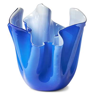 acid etched 'VENINI / MURANO / ITALIA', blue and white lightly iridescent cased glass