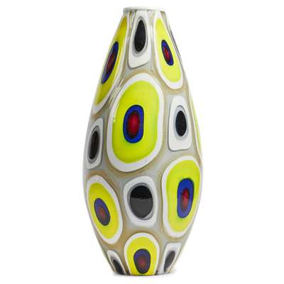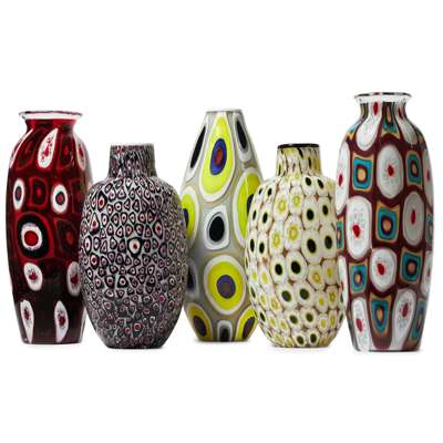 cased cobalt, white and clear glass, incorporating canes of white, cobalt, yellow and red