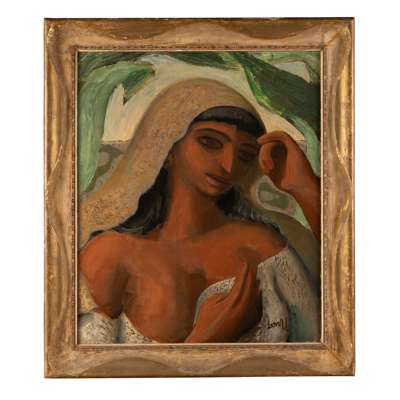On his return from Mexico in December 1928 he steadily produced engravings and paintings on Mexican themes, the most significant being as series of oil paintings depicting the heroes and villains of the conquest that were dramatized in an important series of oil paintings from 1929-30 including Marina. Her pose and general appearance derive from the Tehuana women of his illustrations, which would become an influential source for his work of the later 1930s and is known not to have gone unnoticed by Henry Moore and Frank Dobson who he associated with in the following years.