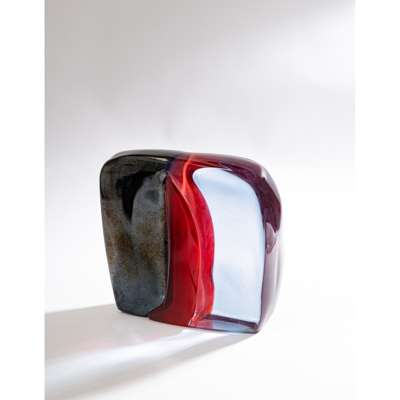signed and dated, red, iridescent and clear glass