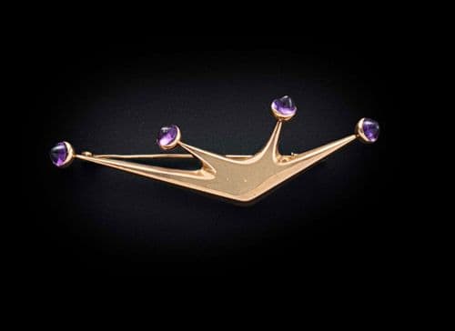 set with four cabochon cut amethysts, marked 'BENT K', '585' and 'DENMARK'