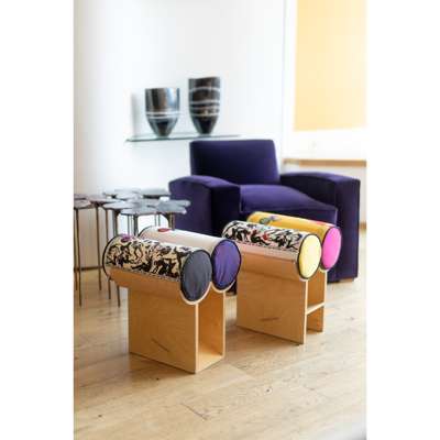 1/200 and 2/200, limited editions, each numbered, with Duniake fabric by Phoebe Boswell, moulded birch plywood