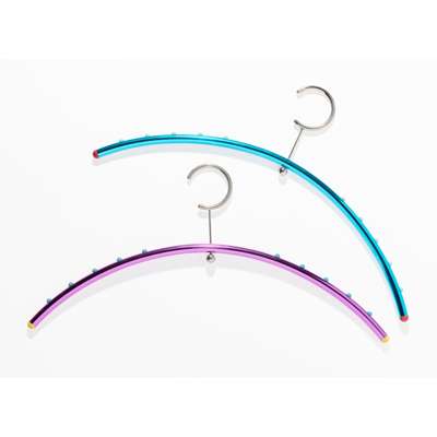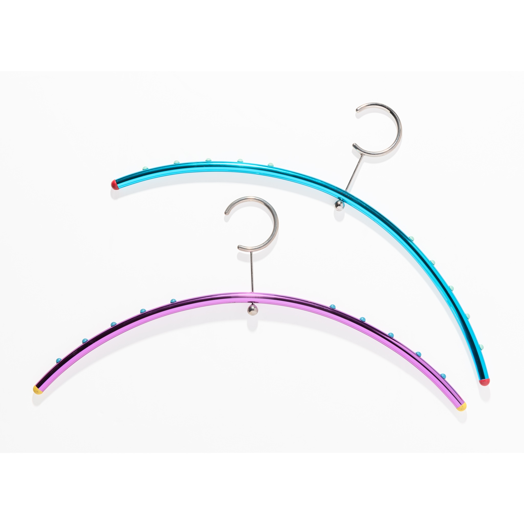 anodized aluminium, 'Spiral' printed to the frame, in electric blue and pink