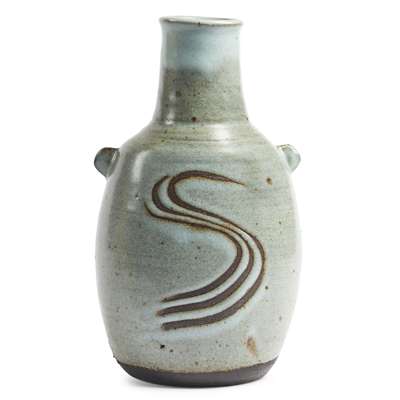impressed artist's and pottery seals, ash glaze, in fitted initialled and dated Japanese wooden box