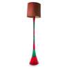 Coloured red and green glass, tubular aluminium, brass, linen shade