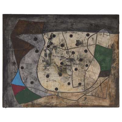 Inscribed with initials, date and studio stamp (on the backboard), pencil and oil on board