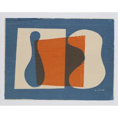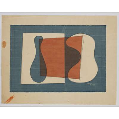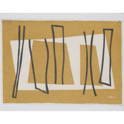 In an attempt to gain publicity for the growing St. Ives art scene in the 1950s, Denis Mitchell and his brother formed the company Porthia Prints. They encouraged local artists to submit original designs, which would then be screen-printed onto pieces of linen and sold as table mats. Terry Frost, who sometimes helped Mitchell with the printing of the textiles, described one reason for the venture as ‘just a way of making a bit of extra money’ for all the artists concerned (quoted in Geoffrey Rayner et al., Textile Design: Artists’ Textiles 1940-1976, Antique Collectors’ Club Ltd., 2014, p.92).