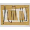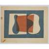 Recently Porthia Prints invited a number of painters and sculptors, who are not normally fabric designers, to solve a simple problem of functional design. The first results of this experiment form the present exhibition. One part is composed of the table mats, screen printed in two colours onto linen, from the designs of these artists. The other part of the exhibition is of paintings, prints and sculptures by the same artists, so that we can see how, in solving his problem of design, each painter and sculptor has used again the particular personal idiom of his art.”