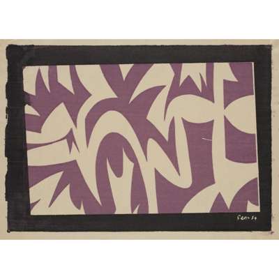In an attempt to gain publicity for the growing St. Ives art scene in the 1950s, Denis Mitchell and his brother formed the company Porthia Prints. They encouraged local artists to submit original designs, which would then be screen-printed onto pieces of linen and sold as table mats. Terry Frost, who sometimes helped Mitchell with the printing of the textiles, described one reason for the venture as ‘just a way of making a bit of extra money’ for all the artists concerned (quoted in Geoffrey Rayner et al., Textile Design: Artists’ Textiles 1940-1976, Antique Collectors’ Club Ltd., 2014, p.92).