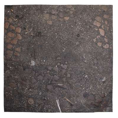 Works from the Earth series are, in the Boyle Family’s own words, ‘three dimensional casts of the surface of the earth which record and document random sites with great accuracy. These works combine real material from the site (stones, dust, twigs etc) with paint and resins, preserving the form of the ground to make unique one-off pieces that suggest and offer new interpretations of the environment.’