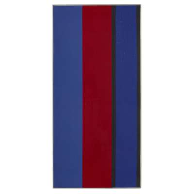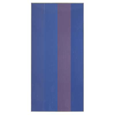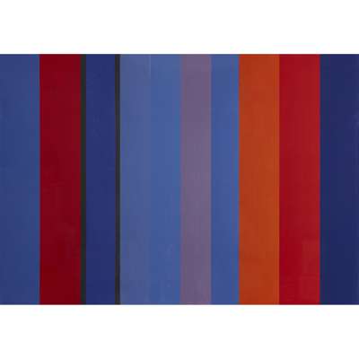 Note: This piece is from the Timberaine series that consist of 10 different woodcuts. The idea behind this series came from one of Frost's large stripe paintings, and was inspired by tree trunks in a forest. Working in woodcut allowed Frost to accomplish the quality and clarity of design he envisioned, in contrast to his painting, where the edges of the stripes were inevitably softer. In this technique Frost used three separate woodcuts to make up the pieces.