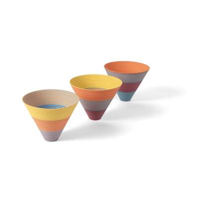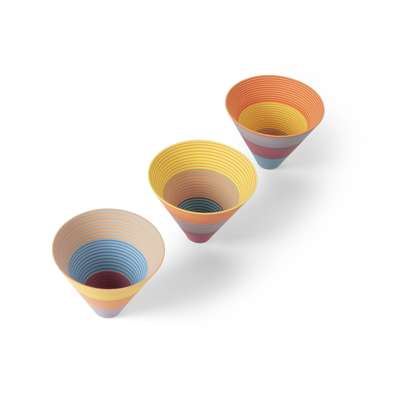 Each 9.5cm high, 12.5cm diameter (3.75in high, 4.8in diameter) (3)