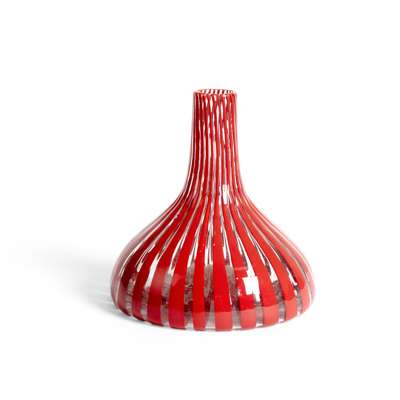 signed 'Venini, Murano, Italia', red and clear striped glass