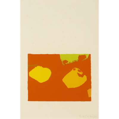 from 'The Shapes of Colour', 1978, signed in pencil (lower right), screenprint, 17.7cm x 23.5cm (plate size) (7in x 9.25in); with another screenprint 'Blue with Lime, Umber, Dull Red and Orange in Violet; January 1976', 1978, to the reverse, signed in pencil.