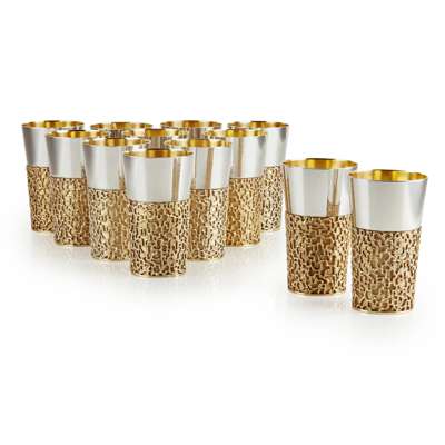 of tapered form, the lower half with applied silver gilt interwoven sleeve, interior with gilt finish (12)