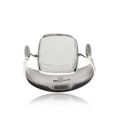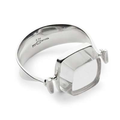 collet set with a large squared rutilated quartz cabochon, to a tapering torc style bangle, numbered '203'