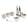 comprising four small bowls, a salt and pepper, candle holder, salt pot and spoon