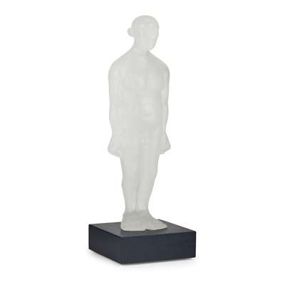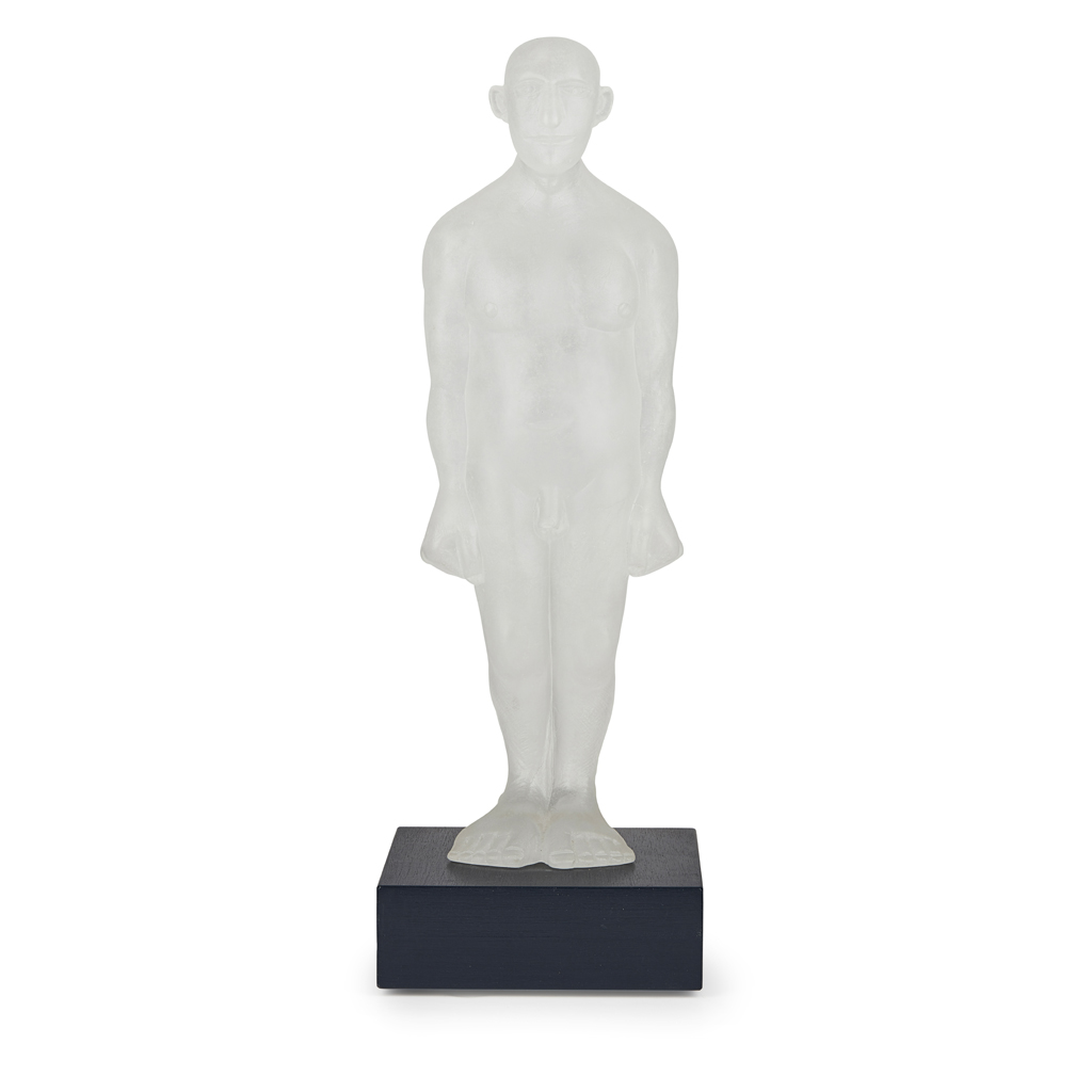 signed and dated (to the base and the underneath of the glass sculpture), glass with wooden base