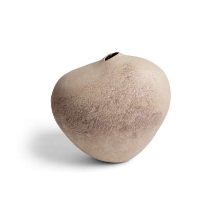 impressed maker's mark, coiled asymmetric form, textured pink glaze