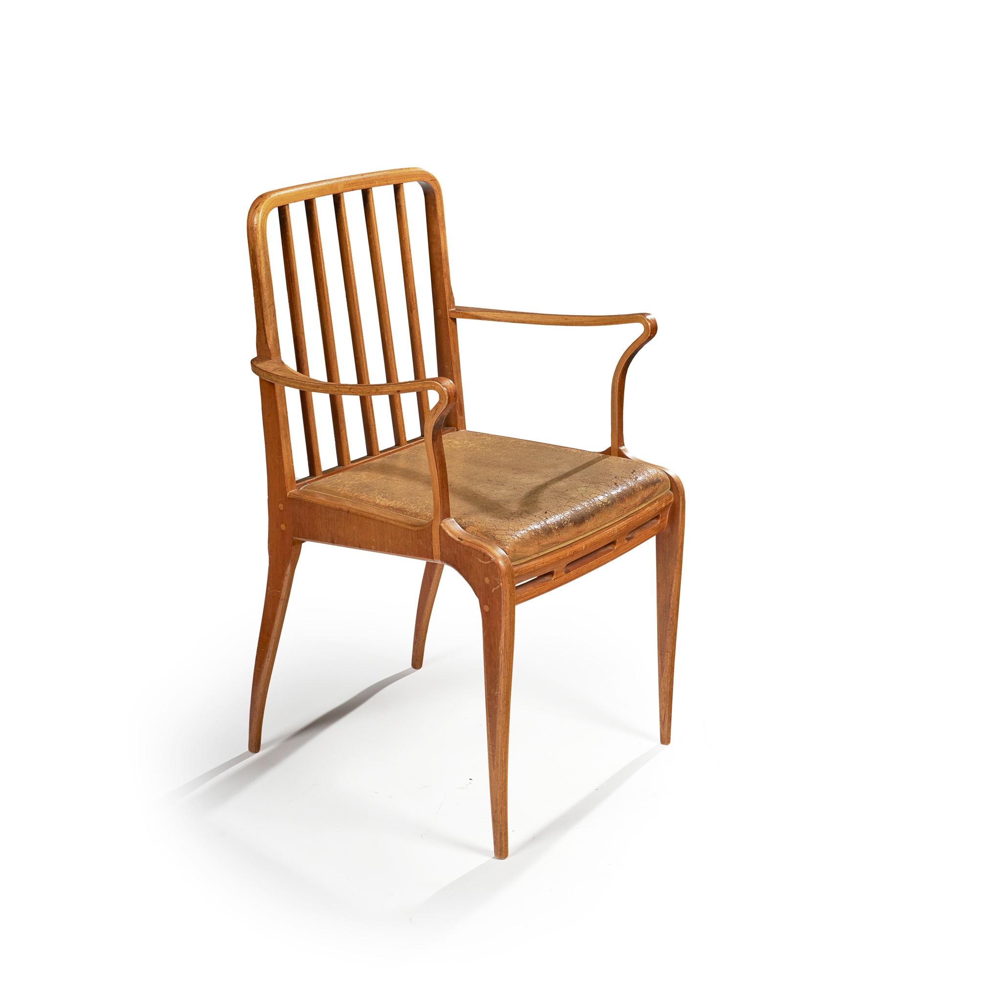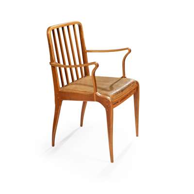 Sir Basil Spence was one of the leading British architects and designers of the 20th century, whose monumental or ''brutalist'' style came to define modern architecture in Britain. Noted commissions include designs for several exhibitions including the Sea and Ships Pavilion for the Festival of Britain (1951), Sussex University (1962), Glasgow Airport (1966), and Coventry Cathedral (1954-62), for which he received a knighthood. In 1947 Neil Morris of manufacturers Morris of Glasgow asked Spence to collaborate on a range of plywood furniture, which was to include his Bambi chair and celebrated Cloud table. The result was the Allegro dining suite, which was awarded a Diploma by the Council of Industrial Design in January 1949. In March of the same year it was exhibited at the Glasgow Today and Tomorrow exhibition, where it was commended, and an example of the armchair was commissioned by the Museum of Modern Art, New York for their collection. In September 1949 it was displayed at the Morris stand, also designed by Spence, at the Scottish Industries Exhibition. In 1951 another single armchair was commissioned for the collection of the Victoria & Albert Museum in London (V&A CIRC.183-1951).