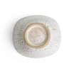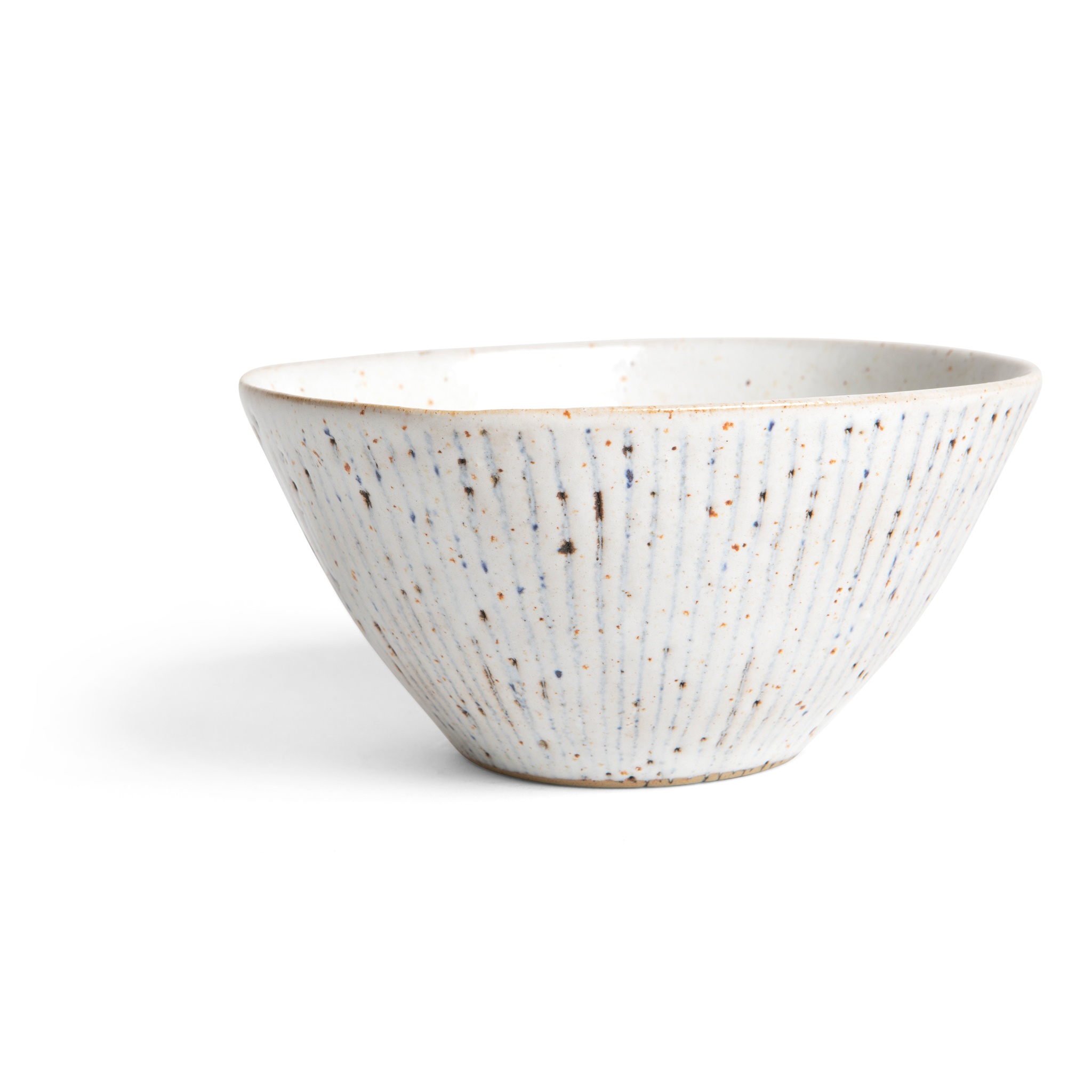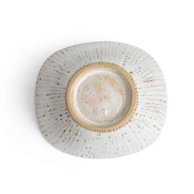 impressed artist's seal, stoneware, with speckled oatmeal glaze inlaid blue lines