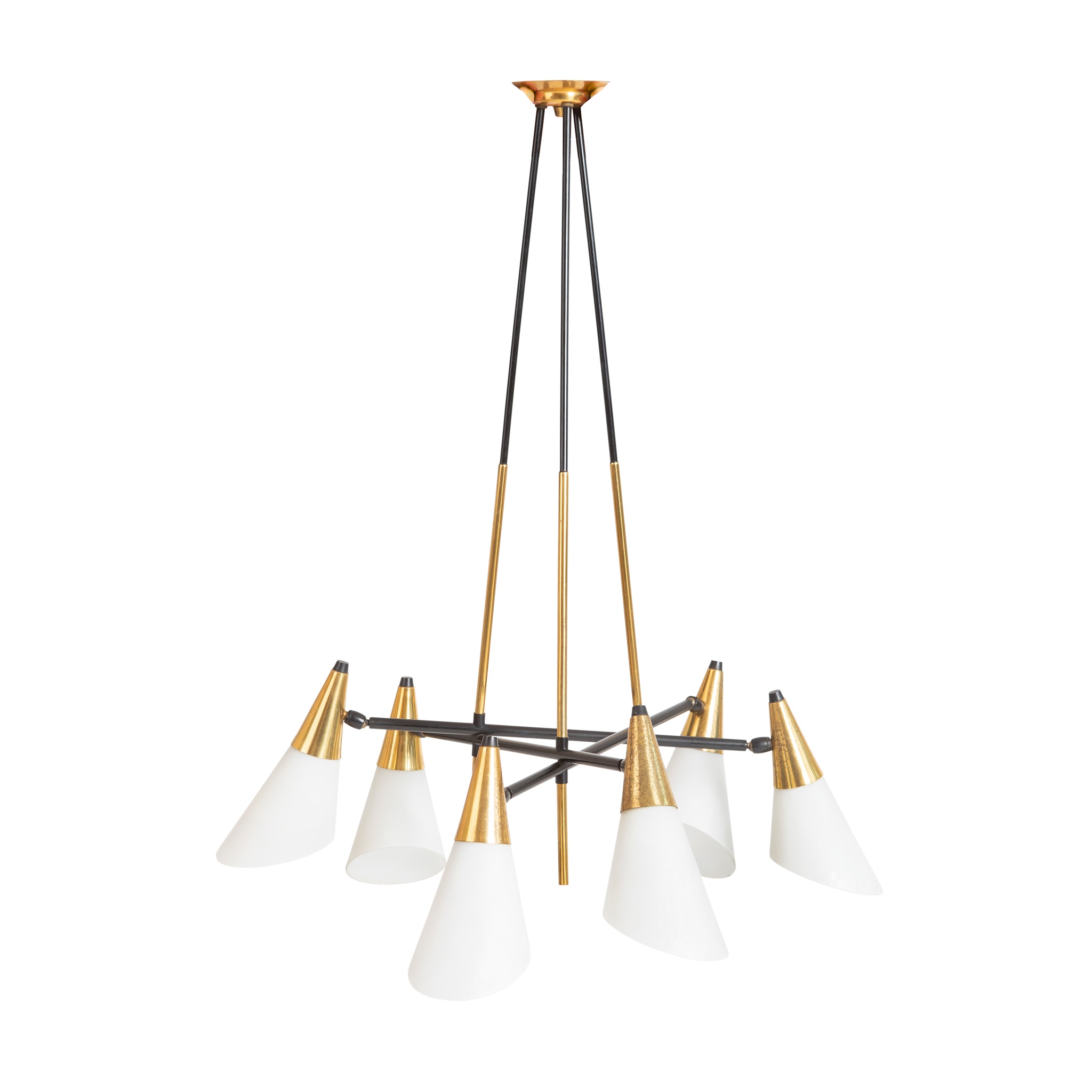brass, opaline glass, metal, in the manner of Stilux and Stilnovo