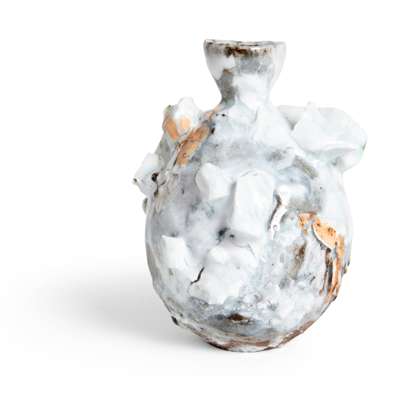 painted artist's mark, stoneware with porcelain deposits over layered slips