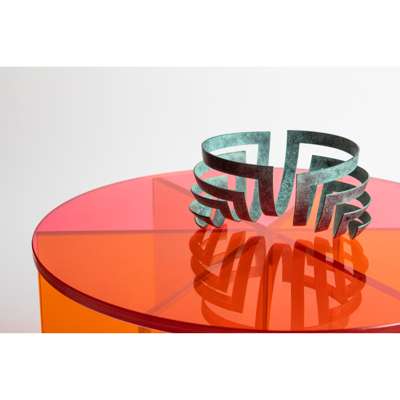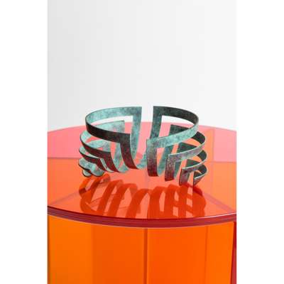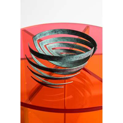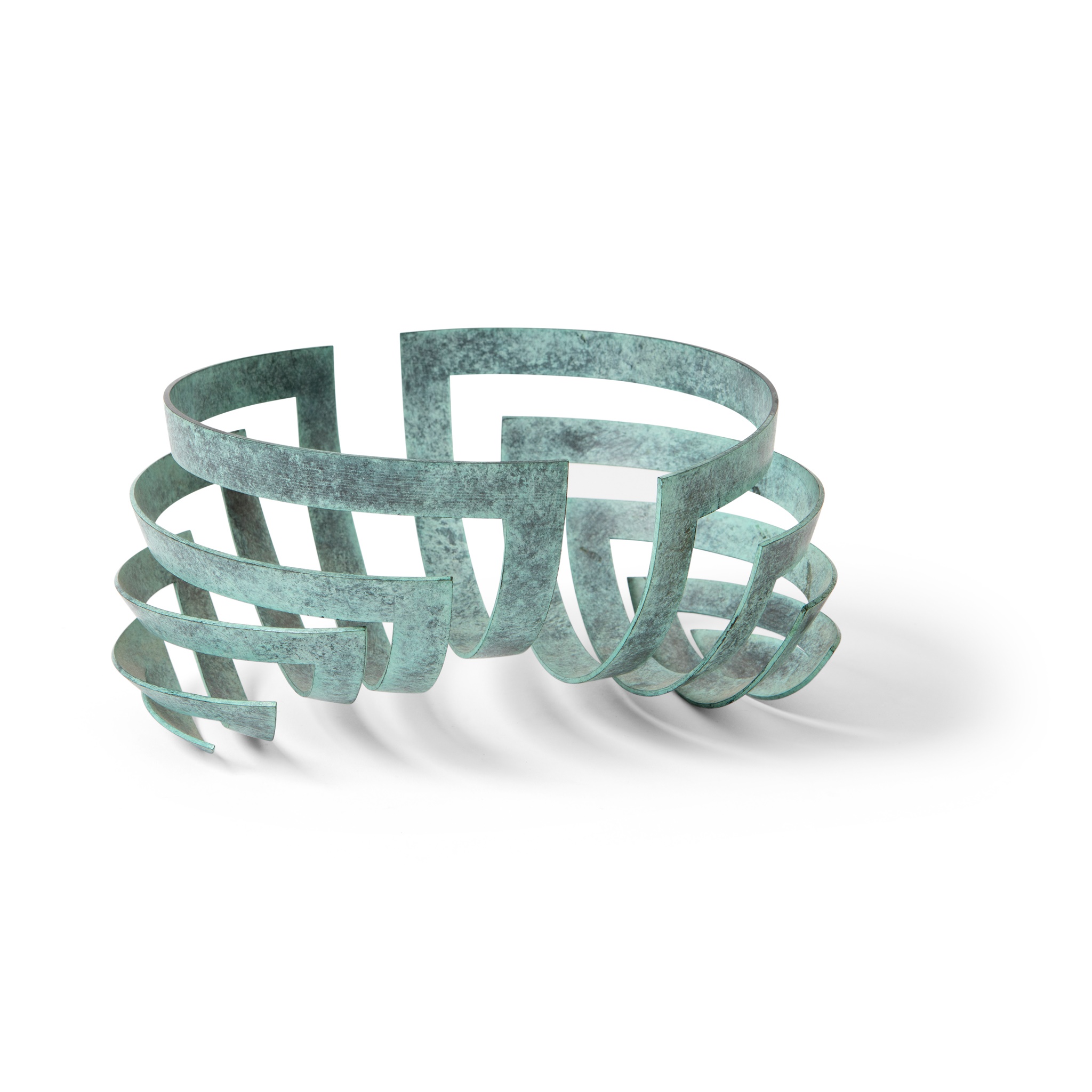 3/25, impressed maker's mark and numbered, verdigris copper, from Kinetic Series