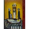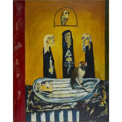 John Bellany writes about this work: ‘In this triptych I have attempted to make a statement . . . about the human condition . . . The iconography of the two side panels derive from a feeling of Calvinist repression . . . the central panel is a visual manifestation of hope.’