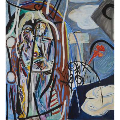 Oil on canvas across two parts