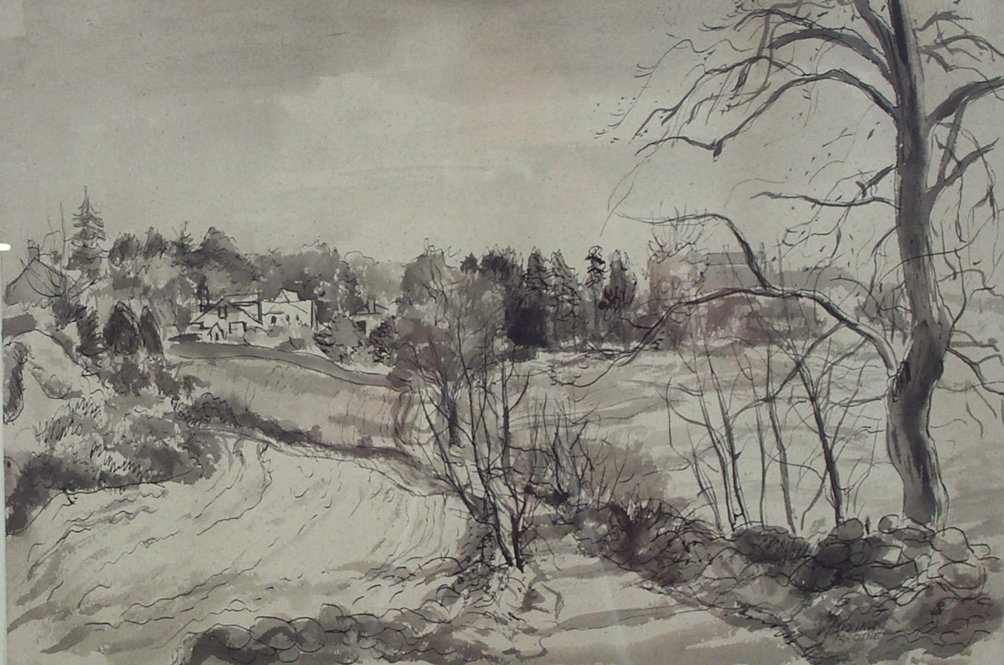 FARM BUILDINGS IN A WOODED LANDSCAPE