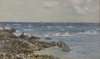A COASTAL SCENE WITH BOYS ON THE ROCKS