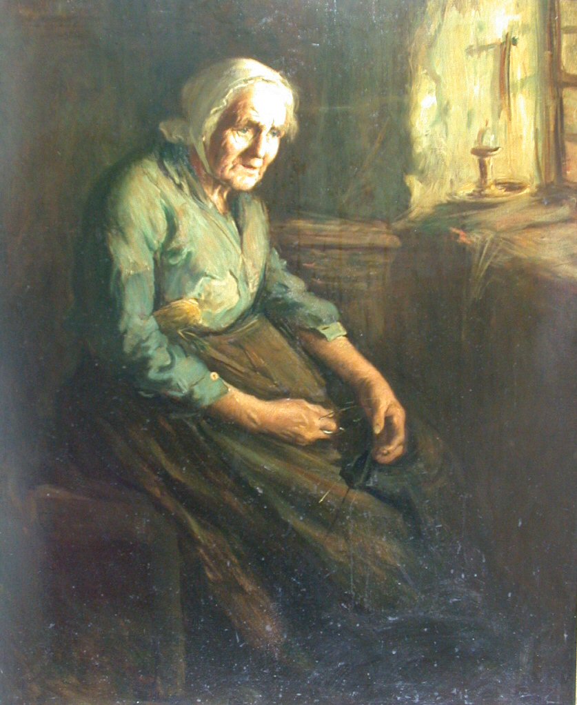 STUDY OF AN OLD WOMAN KNITTING