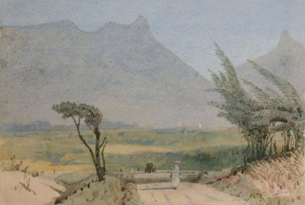 A VIEW OF MAURITIUS - FIGURE AND CART ON A COUNTRY ROAD