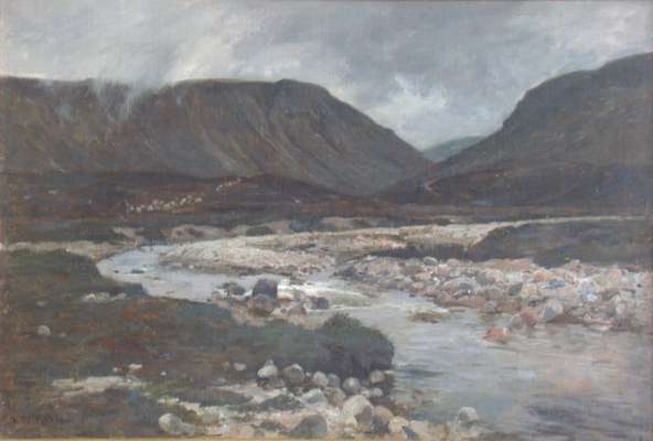 A HIGHLAND LOCH WITH DISTANT CASTLE
