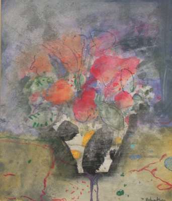A STILL LIFE OF ASSORTED FLOWERS IN A JUG