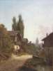 A COUNTRY TOWN WITH FIGURE BY A WATERPUMP