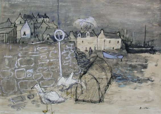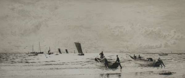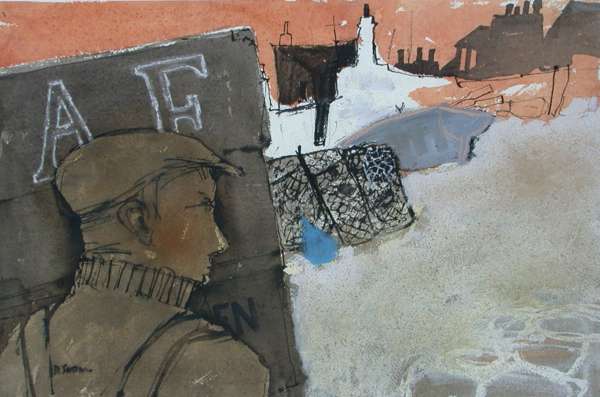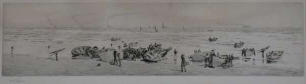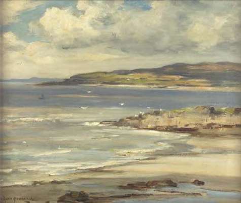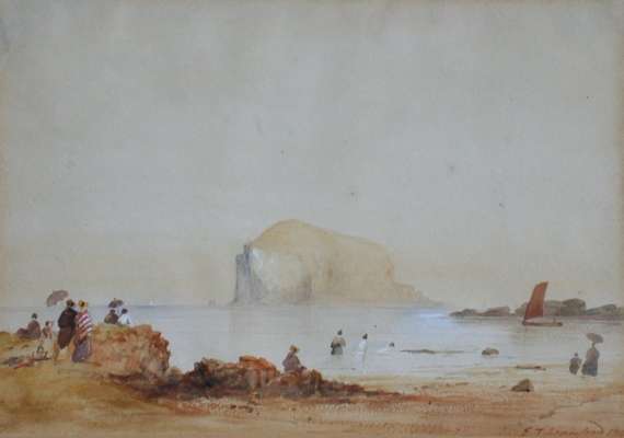FIGURES ON THE BEACH NEAR NORTH BERWICK - THE BASS ROCK IN THE DISTANCE