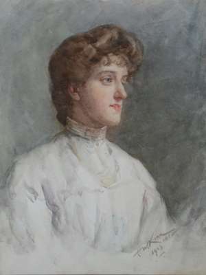 HALF-LENGTH PORTRAIT OF A YOUNG WOMAN IN WHITE BLOUSE