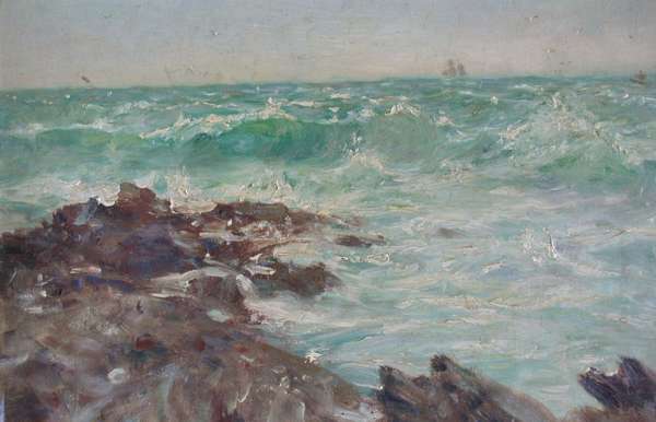 WAVES BREAKING ON A DESERTED ROCKY COAST